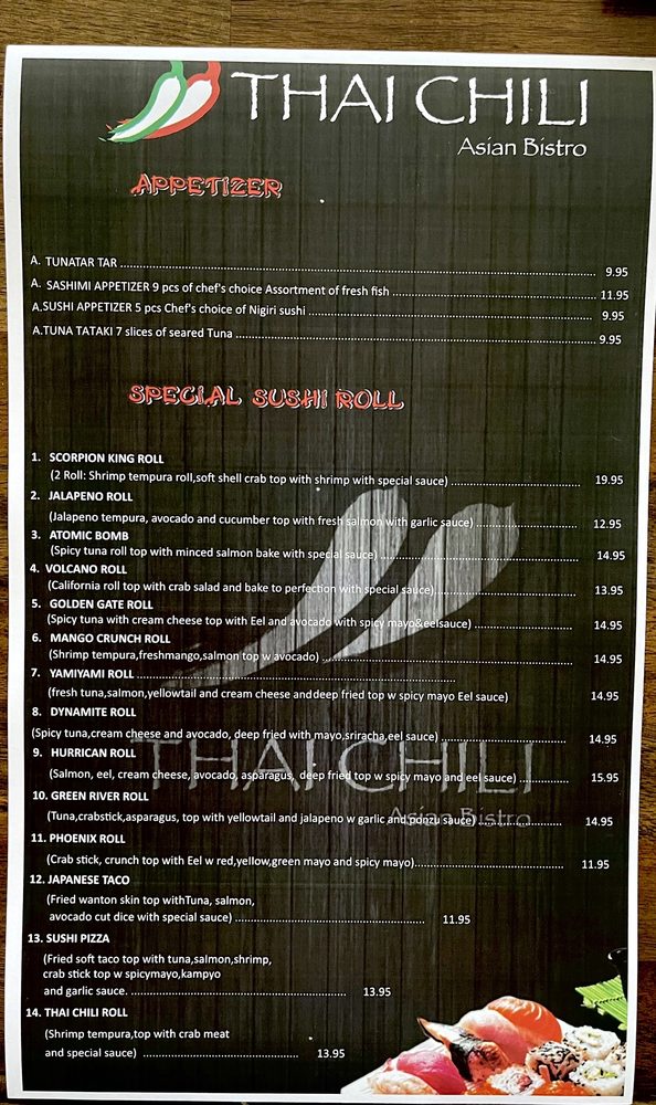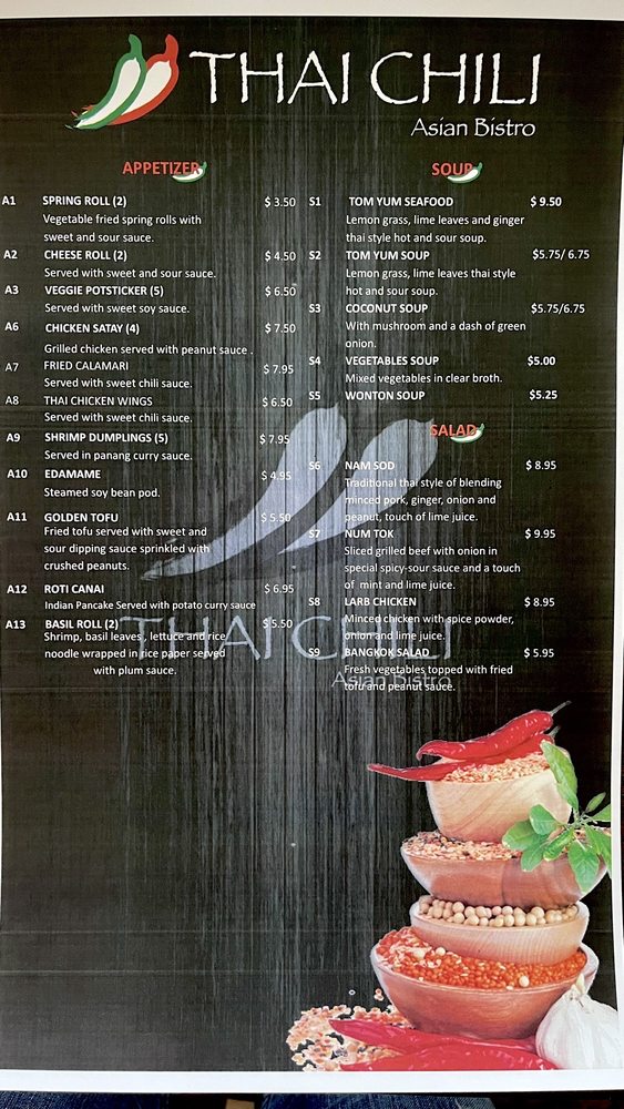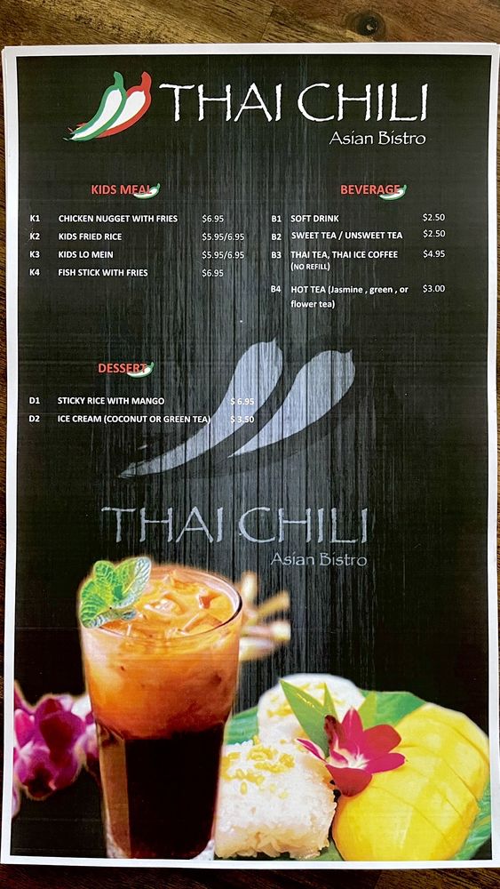 Welcome to Thai Chili Asian Bistro, a hidden gem in Ooltewah offering a fusion of Thai and sushi cuisine. With a menu that caters to vegans and vegetarians, this casual spot provides a range of options for all dietary preferences. Known for their generous portion sizes and delectable dishes, customers rave about the yellow curry, Thai tea, mango sticky rice, Mango Crunch roll, Thai Chili Roll, roti canai, pineapple fried rice, and Pad Ka Pow.